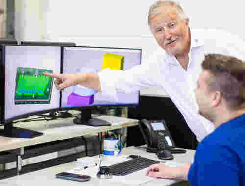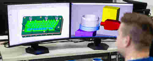 Ist das Werkzeug digital erstellt, erhalten jene Kollegen, die für die CAM-Technologie zuständig sind, die Konstruktionsdaten der CAD-Software. Im CAM werden die Daten auf ihre Vollständigkeit und Machbarkeit überprüft, und Programme für die CNC-Maschine erstellt, die die Bauteile fertigen sollen.