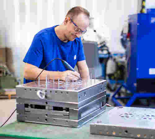 Das Polieren sorgt schließlich für das optimale Finish und schließt den Fertigungsprozess der Werkzeugformen von Werkzeug-Technik Schmitz ab. Durch das Polieren werden aus Metallen spiegelglatte Oberflächen erzielt, was vor allem funktionalen Zwecken dient. Die Reibung wird minimiert und die Lebensdauer der Teile verlängert. Zudem erhalten die Bauteile glatte und perfekte Oberflächen.