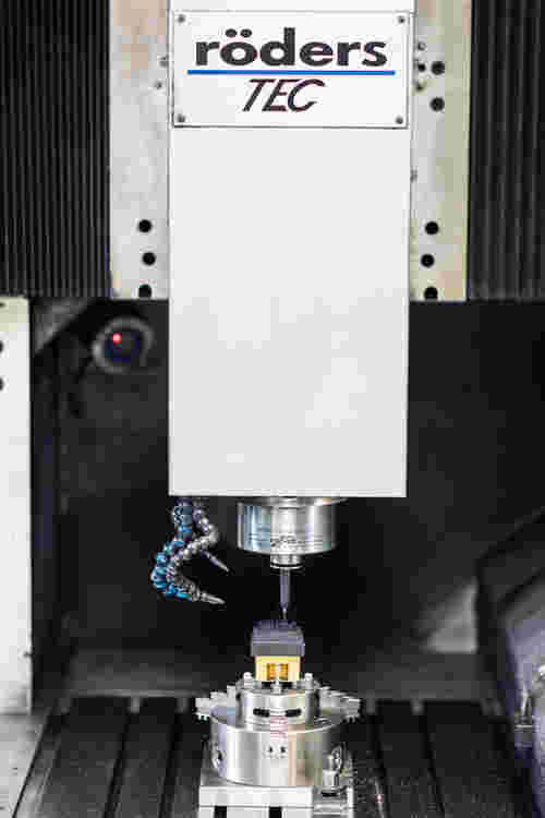 Durch die simultane Bewegung entlang der fünf Achsen können komplexere Geometrien gefertigt werden z.B. mit Querbohrungen oder Hinterschnitten. Auch die Bearbeitung von Freiformflächen oder sphärisch gewölbten Flächen ist möglich.