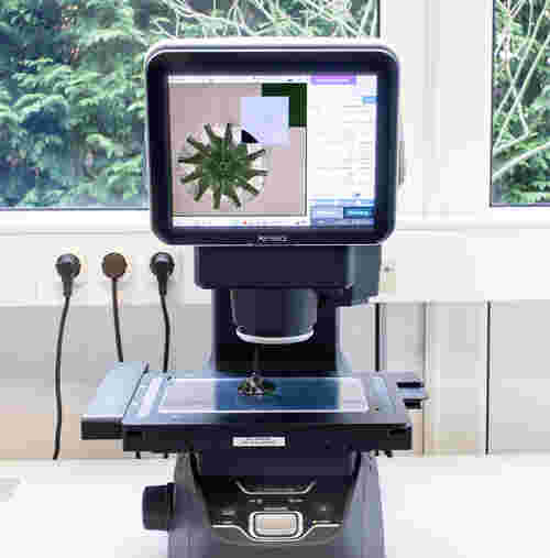 Die 3D-Koordinaten-Messmaschine ist eine Wenzelmaschine, die bis auf drei Mikrometer messen und einen Bereich von 1000 mm x 800 mm x 700 mm abdecken kann. Sie misst taktil, was bedeutet, dass sie mit einem physischen Berührungspunkt arbeitet, um die Maße eines Objekts zu erfassen. Unsere optischen Messgeräte wie z.B. das Keyence Messgeräte aus der LM Modellreihe erlauben hochpräzise Messungen bis +/- 0,1 Mikrometer. Unser Digitalmikroskop VHX-6000 ermöglicht detaillierte Oberflächenaufnahmen und eine hohe Tiefenschärfe zur Analyse im 2D- und 3D-Bereich.